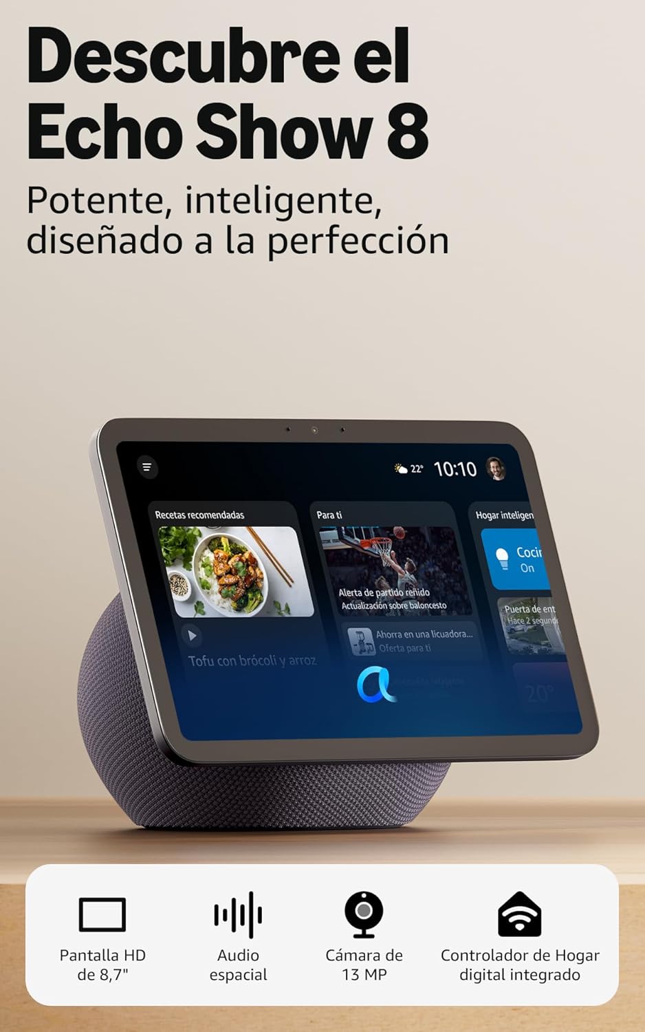 Echo Show 5 (Última generación) | Pantalla táctil inteligente con Alexa diseñada para controlar tus dispositivos de Hogar digital y más | Blanco